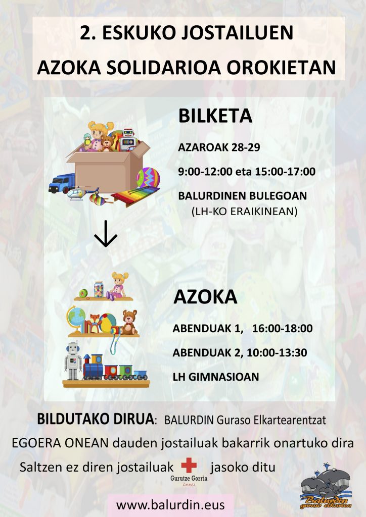 Este año volvemos a organizar el mercado solidario de juguetes de Balurdin. Y este año, el dinero recaudado será destinado para financiar diferentes actividades organizadas por la asociación de padres y madres. Os mostramos la agenda de este año y algunas notas importantes: