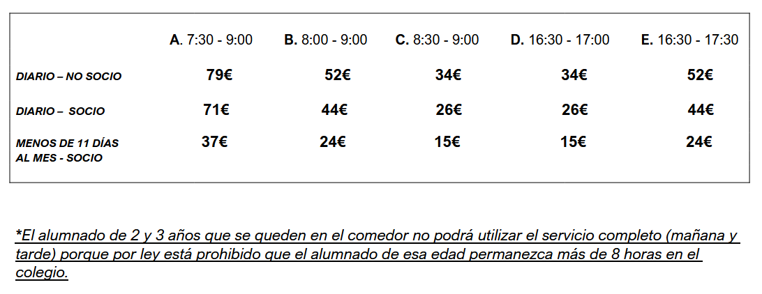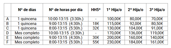 - Los niños y niñas de HH2 y HH3 comenzarán una vez finalizado el periodo de adaptación.